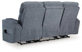 Chill-out time has never looked better. This power reclining sofa's adjustable headrest ensures a perfect view of the TV no matter how far back you recline, while the extended ottoman takes your comfort to the next level. A drop-down table is decked out with reading lights and charging features. Plush yet practical Next-Gen Nuvella™ performance fabric and ambient lighting complete the theater-style experience. It's time to relax, nap or binge-watch in the best seats in the house.