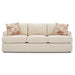 The Malanda stationary sofa is the ultimate combination of soft feel and luxe look. Sink into your comfort oasis with the wide, 85" silhouette. The deep seats allow the pillow back cushions to envelope you. Each loose back cushion is generously filled with premium pillow fibers and feature bottom zipper access for fiber adjustment keeping your sofa looking new and allowing customization to fit your comfort level. Detailed tailoring is evident from the experienced USA craftsmanship. Thin, beveled arms lend a modern look while the solid foam, reversible T-cushion offers a down-home comfort, traditional feel. Over 700 fabric options allow you to make a statement, or blend in with your décor. Two pillows included in fabric of choice. Complete your collection with the matching loveseat, chair and ottoman.