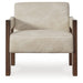 This accent chair is an ultra-contemporary addition to your seating area. Warm espresso-hued wood and neutral faux leather harmonize beautifully for a luxuriously welcoming vibe. Whether you're cozying up with coffee or settling in to stream your favorite show, relaxing has never been so comfortably chic.