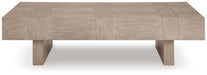This striking coffee table looks equally at home in traditional or modern settings. A textural light gray finish offers a casual modern look, while the double plinth base exudes a classically contemporary sensibility. This timeless design adds a transitional touch that's sure to serve you well.