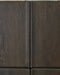 Details Doors and posts made with solid oak wood, Sides, top, back and interior made with oak veneer and engineered wood substrate, Espresso finish, 4 doors with push magnet function, 6 fixed shelves