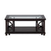 The Panama Occasional Collection boasts a striking design with half-circle base detail and tempered glass top inserts. The tables are finished in a dark, rich color that highlights the wood grain and complements any decor style. With its attention-grabbing design and elegant finish, the Panama occasional collection is a must-have for those looking to add a touch of sophistication to their home.