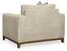 Serene style with a modern sensibility. Delight in the cozy, versatile embrace of this oversized chair. It takes an on-trend approach to irresistible texture and natural beauty, showcasing soft upholstery accented with a transitional wood trim. As refined as it is laid back, the chair also keeps comfort a priority with a plush, thick seat cushion.