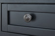 | Details | Made with hardwood solids, mango wood veneer and MDF substrates, Top with butcher block veneer pattern in rich brown wood tone finish, Base with warm satin black finish, Hardware with dark pewter-tone finish, 3 smooth-gliding drawers with fully finished interiors, dovetail construction and heavy-duty ball-bearing side glides, USB-A and USB-C charging ports, Power cord included; UL Listed, Assembly required | |