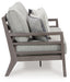 This sofa is a stylish outdoor piece with staying power. Built for longevity with Weatherwood, an engineered resin polymer with the appearance of wood, it indulges you in contemporary design without sacrificing durability. Stunning form and can’t-miss function—with this sofa, endless days in the shade await.