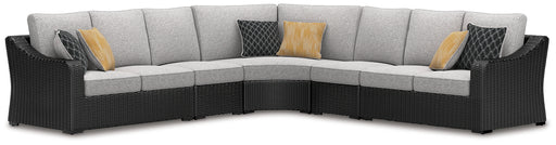 Signature Design by Ashley®Sleek, contemporary style meets outdoor living in this sectional. Its clean-lined black aluminum frame and resin wicker back expertly balance good ...