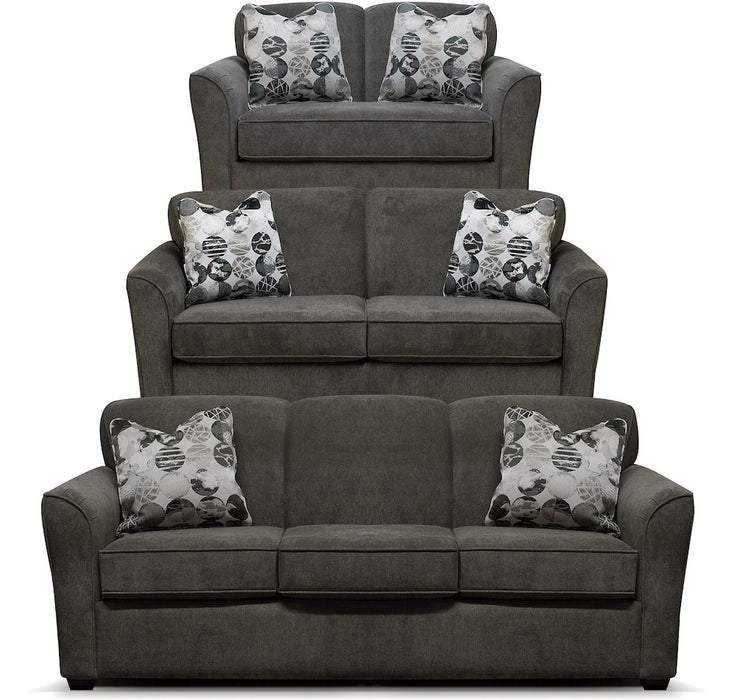 Our Smyrna collection features a contemporary sofa, loveseat, chair, and ottoman, as well as queen, full, and twin sleepers. The sofa boasts a three over three configuration with a channel stitched back over bordered seat cushions and a clean front rail. The modified half-moon arms are slightly flared. The sleeper is available with a standard, Visco, or air mattress.