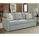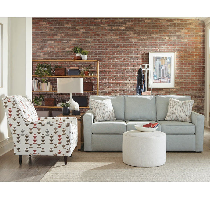 Inviting and uncommonly versatile, Norris has a laid back attitude. This collection flaunts its transitional look with its track arm, wooden block leg, and plush seat. This silhouette is available as a sofa, loveseat, chair, and queen sleeper, and floating ottoman chaise. Available in over 400 fabrics... the options are endless!