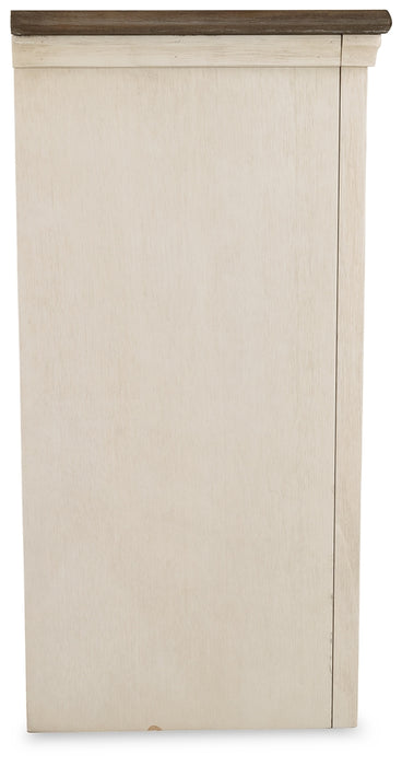 | Details | Made of veneers, wood and engineered wood, Two-tone finish (weathered oak top over antiqued white), 2 side cabinets with 2 adjustable shelves each, 1 center cabinet with 2 doors and 2 adjustable shelves, Cabinet doors with glass inlays, Black faceted hardware, Cutouts for wire management | |