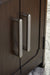 Details Made with hardwood solids, oak veneer and MDF substrate, Dark brown wood-tone finish with rich dark grain contrast, Metal door handles with aged pewter-tone finish, 2-door cabinet with adjustable shelf, Assembly required