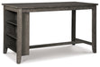 Perfect portion. Striking a simply chic pose, this dining room counter table serves up high style on a smaller scale. Its antiqued gray wash finish gives the clean-lined design a casually cool sensibility. Side shelves cleverly balance form and function.