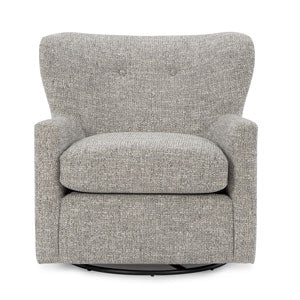 The Casimere is a transitional swivel glider chair that is adorned with two accent buttons in the back while the subtle wingback offers a nice flair. It features slimline and lightly padded arms, a solid foam and a reversible seat cushion. The whisper smooth glide motion combined with a 360 swivel action will having you reimagining the definition of comfort. Over 700 fabrics are available to make it your own. Also available as a stationary accent chair. Made in the USA by finely skilled craftsmen.