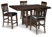 Modern sophistication, beautifully served. This counter height dining table set with drop-in extension leaf raises the bar with a simply striking design and rich, dark finish. Four slat-back bar stools adorned with faux leather upholstered seats offer comfort and easy-care appeal.