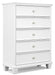 Details B680B8: Includes full panel headboard, footboard and rails, Made with hardwood solids and MDF substrate, White painted finish, Tapered feet, Foundation/box spring required, sold separately, Mattress available, sold separately, Assembly required, Bed is compatible with an adjustable base, B680B1: Includes dresser and mirror, Made with hardwood solids and MDF substrate, White painted finish, 7 smooth-gliding drawers with dovetail construction and ball-bearing side glides, Round metal drawer knobs with satin nickel-tone finish, Tapered feet, Mirror attaches to back of dresser, Assembly required, B680-46: Made with hardwood solids and MDF substrate, White painted finish, Round metal drawer knobs with satin nickel-tone finish, Tapered feet, Framed drawer fronts, 5 smooth-gliding drawers with dovetail construction and ball-bearing side glides, B680-92: Made with hardwood solids and MDF substrate, White painted finish, Round metal drawer knobs with satin nickel-tone finish, Tapered feet, Framed drawer fronts, 2 smooth-gliding drawers with dovetail construction and ball-bearing side glides,