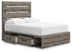 Graystorm Full Panel Bed with Storage with Mirrored Dresser and Nightstand