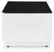 Details Made with MDF substrates, High-gloss white finish, Black glass tabletop; black acrylic laminate drawer fronts, 2 smooth-gliding drawers, Open display shelf, Casters for easy mobility