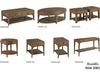 The Nicolette collection includes a rectangular cocktail table, oval cocktail table, bunching cocktail table, oval end table, rectangular end table, rectangular chairside table, and sofa table.