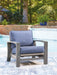 High style crafted for low-maintenance living. Turn your outdoor space into a sweet retreat with this rocking lounge chair. The casually cool piece entices with easy-breezy gray resin wicker over an all-weather aluminum frame, for an upscale aesthetic that’s downright durable. Wrapped in high-performance Nuvella® fabric, the plush cushions are indulgently comfortable yet so easy to maintain. Rock on.