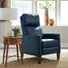 The Janae Recliner has a modern aesthetic that can easily complement or define a room with the clean lines, sleek track arms and tapered wood legs…all perfectly scaled to fit any space. Tall, double cushion back allows adjustment to the amount of pillow fibers in the top back cushion to customize your comfort. Recline to any position at the touch of a button with the Power option…or simply push back to recline in the manual version.