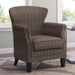 Our Layla accent chair is a tasteful and charming addition to any space, combining a classic silhouette with a soft, striped upholstery. The chair is adorned with nailhead trim and boasts a reversible cushion, offering both style and functionality. You'll also enjoy the comfortable seat as you sit back and relax in this lovely chair.