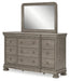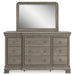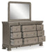 | Details | Includes dresser and mirror, Made with hardwood solids, birch veneer and MDF substrate, Light gray finish enhances the natural wood grain, Ring pull hardware, 9 drawers with fully finished interiors, dovetail construction and ball-bearing side glides, Jewelry drawer conveniently located in the center valance, Mirror attaches to back of dresser | |