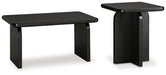 Flexible, functional and fashionable. Add casually cool flair to your living room with this coffee table and end table set. A sleek black finish suits a variety of color palettes, while soft architectural geometry brings flair to the clean-lined design. Crafted with versatility in mind, this table duo can be placed seamlessly in settings ranging from casual to refined.