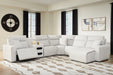 | Details | Includes 6 modular pieces: left-arm facing power recliner, power armless recliner, armless chair, console with audio system, wedge and right-arm facing power chaise, "Left-arm" and "right-arm" describe the position of the arm when you face the piece, Versatile modular pieces fit together in a variety of configurations, One-touch power reclining with adjustable positions and Easy View™ adjustable headrest, Zero-draw USB-A charging only consumes power when in use, Reinforced frame and metal seat box provide added stability, Attached back and seat cushions; high-quality foam cushions wrapped in poly fiber, Polyester upholstery; Next-Gen Nuvella™ is a performance fabric that is soft, easy to clean, stain-resistant and durable, Clean fabric with mild soap and water, let air dry; for stubborn stains, use a solution of 4 oz. bleach to 28 oz. water, Throw pillows with easy-to-remove zippered covers for machine washing; pillows with soft polyfill, Zero wall recliner design requires minimal space between wall and chair back, Console with plexiglass top; built-in audio sound system with wireless connectivity; audio controls located on console; USB charging, Power cord included; UL Listed | |