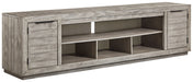 | Details | Made of pine wood, pine veneer and engineered wood, Weathered light gray finish, 2 side cabinets each with single adjustable shelf, Fixed open center shelf, 3 open cubbies, Cutouts for wire management, Power cord included; UL Listed, Assembly required | |