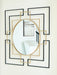 This accent mirror brings a layer of contemporary flair to traditional art deco motifs. Its frame, in a geometric design emphasized by black and goldtone finishes, makes a strong sculptural statement. What a sleekly stylish addition to a living room or entryway.