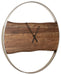 Time to simplify your style? This round wall clock is a mastery in minimalism. Its striking brown finished wood with silvertone finished frame and hands prove that less really is more—just two simple hands floating on a wooden plank. This streamlined clock is the ultimate designer piece for lovers of casual aesthetics.