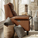 The Prima high leg reclining chair exudes elements of Mid-Century design while maintaining enough traditional features to fit in most décors.  The straight lines in the profile, angled arms, and slightly pitched back will make this recliner the prima donna of your living room. If choosing power recline, the touch button sensors will allow you to effortlessly raise the foot extension as well as recline the back.  Start and stop at any position that makes you comfortable. If non-power is your game, a simple push back on the arms will get you where you want to be. Choose from three different finish options to complement the nearly 700 fabric options available.  Regardless of your choice, it will be custom made in one of the industry's fastest turnaround times by our Indiana craftsmen.  A zipper in the back will allow you to have access to the high-loft cushioning fiber blend to customize your comfort level.  The seat cushion features encased coil springs for long lasting comfort.