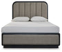 Rowanbeck Queen Upholstered Panel Bed with Mirrored Dresser, Chest and Nightstand