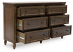 Details Made with hardwood solids, veneers and MDF substrates, Brown finish, Oil-rubbed bronze-tone knobs, 6 drawers with fully finished interior, dovetail construction and heavy duty ball-bearing side glides (top drawers felt lined), Turned feet