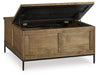 | Details | Made with solid wood frame, birch veneer, MDF substrate and steel, Clean medium brown wood finish, Tubular steel legs with matte black powder coat finish, Lift-top design, Hinged top opens to reveal storage, Assembly required | |