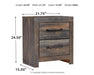 Details B211-46: Made of engineered wood (MDF/particleboard) and decorative laminate, Brown rustic finish with burnt orange and teal accents in a replicated wood grain with authentic touch, Large-scale hardware with dark finish, 5 smooth-gliding drawers, Drawer interiors are lined with a faux linen laminate for a clean, finished look, Includes tipover restraint device, Small Space Solution, Safety is a top priority, clothing storage units are designed to meet the most current standard for stability, ASTM F 2057 (ASTM International), Drawers extend out to accommodate maximum access to drawer interior while maintaining safety, B211-92: Made of engineered wood (MDF/particleboard) and decorative laminate, Brown rustic finish with burnt orange and teal accents in a replicated wood grain with authentic touch, 2 smooth-gliding drawers, Drawer interiors are lined with a faux linen laminate for a clean, finished look, Large-scale hardware with dark finish, 2 slim-profile USB-C charging stations, Power cord included; UL Listed, Small Space Solution, B211B1: Made of engineered wood (MDF/particleboard) and decorative laminate, Brown rustic finish with burnt orange and teal accents in a replicated wood grain with authentic touch, 6 smooth-gliding drawers, Drawers lined with faux linen laminate, Dark-tone industrial hardware, Mirror attaches to back of dresser, Assembly required, Includes tipover restraint device, B211B8: Includes headboard, footboard, platform rails, side storage unit and wood roll slats, Made of engineered wood (MDF/particleboard) and decorative laminate, Brown rustic finish with burnt orange and teal accents in a replicated wood grain with authentic touch, 2 drawers and 2 open cubbies that each accommodate 10.5"W x 10.5"D x 11"H cube storage bin (not provided), Decorative sconce LED light, runs on 3AA batteries, 2 USB charging ports, Power cord included; UL Listed, Bed does not require additional foundation/box spring; accommodates most zero clearance adjustable bases with the addition of a bunkie board, Dark-tone industrial hardware, Mattress available, sold separately, Assembly required,