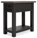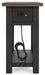 | Details | Made of wood, white oak veneers and engineered wood, Weathered grayish brown top, Textured wire brushed base in a black rub-through finish, Chairside end table features plank-styled top, Smooth-gliding drawer perfect for holding remotes and more, Integrated 110V power supply with dual USB charging ports, Black faceted hardware, Assembly required | |