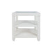 Urban Icon is a collection that combines modern accents with traditional looks and tempered glass tabletop inserts. This end table features two shelves for open storage or display.
