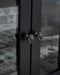 Details Made with hardwood solids, mango wood veneer and MDF substrates, Top with butcher block veneer pattern in rich brown wood-tone finish, Base with warm satin black finish, Hardware with dark bronze-tone finish, 2 glass door storage cabinets, each with adjustable shelf, Open center cabinet with adjustable shelf, Compatible with W100-101 or W100-02 electric fireplace insert (sold separately), Minor assembly required