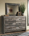 Details Includes dresser and mirror, Made of engineered wood (MDF/particleboard) and decorative laminate, Rustic gray planked replicated oak grain with authentic touch, Hooded pull hardware in dark finish, 6 smooth-gliding drawers, Mirror attaches to back of dresser, Safety is a top priority, clothing storage units are designed to meet the most current standard for stability, ASTM F 2057 (ASTM International), Drawers extend out to accommodate maximum access to drawer interior while maintaining safety, Assembly required