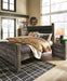 Includes queen upholstered poster headboard, footboard, posts and rails, Made with engineered wood (MDF/particleboard/plywood) and decorative laminate for the right balance of affordability and durability, Rustic gray planked replicated oak grain with authentic touch, Decorative laminate replicates natural or man-made material surfaces with consistent color, pattern and texture, Headboard with black faux leather upholstery, Foundation/box spring required, sold separately, Mattress available, sold separately, Assembly required |